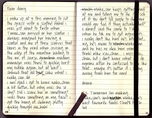 The show which most easily has grabbed me by the collar is Hanasaku Iroha, with its perfect blend of light-hearted comedy and drama, jaw-dropping scenery and adorable protagonist. In fact, Ohana is such a beautiful protagonist, I couldn’t help but infiltrate in the inn, sneak into her room and take a peek at her diary to see what her thoughts on all of this are. D-don’t think anything weird or something… It’s all for the sake of anime blogging! And science. You monster.