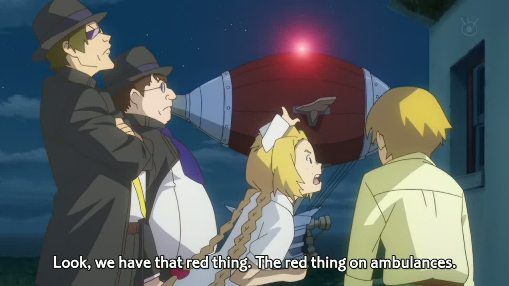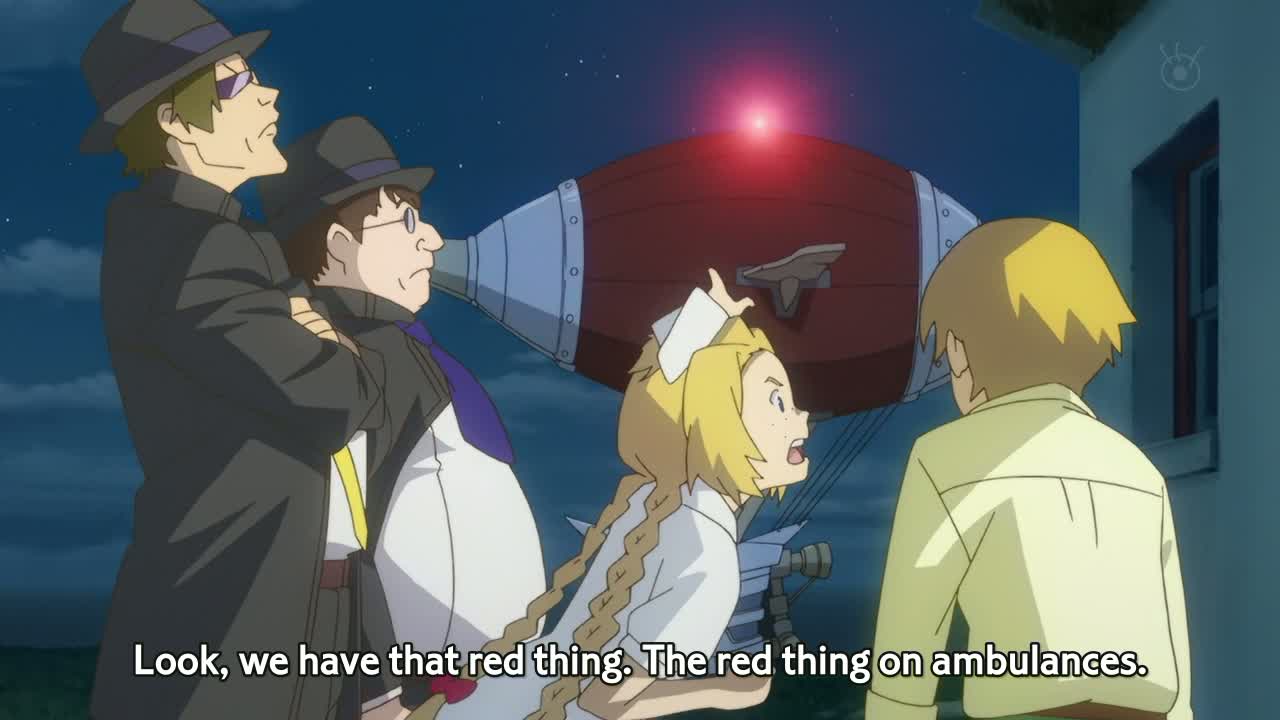 It’s a little underwhelming after how much of a drama queen Yamakan was being by saying that he’ll quit anime if this show doesn’t succeed, but I can’t really hold that against the show itself. Despite the derivative elements, the execution is very solid and there’s enough of an interesting original premise to keep it from feeling like we’ve been here already. There’s a lot of potential here, and I can’t wait to see what they do with it. I’m especially looking forward to learning more about the Fractale system’s true nature and why it’s breaking down. However, if that trio in the machine gun blimp is coming along for the ride, it could get pretty bumpy.