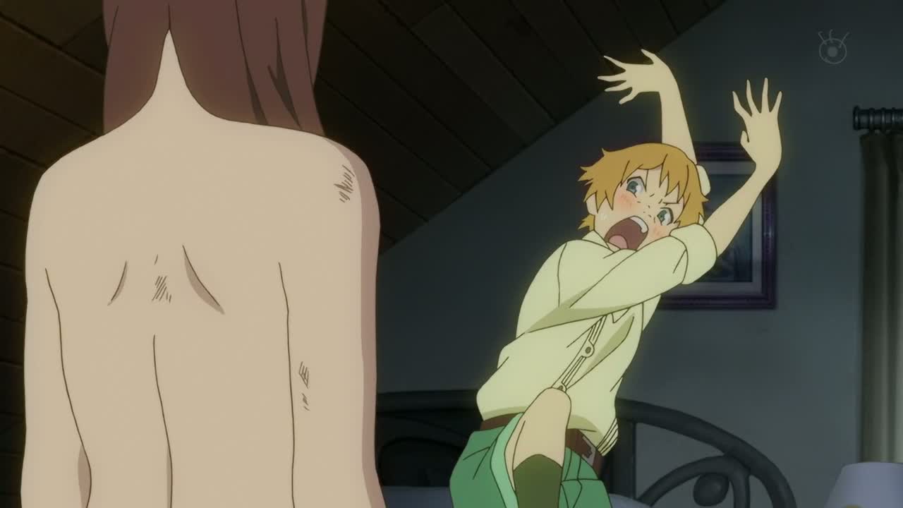 Protagonists: While so far these characters aren’t wholly original, they are something we don’t see often these days. The heroine Phryne is independent, capable, and somehow both mysterious and down-to-earth at the same time. She is cute but never tries to be, which is quite rare. Her understated strength and femininity are very reminiscent of classic Ghibli heroines. The hero Clain is similarly refreshing and much more realistic than most contemporary anime protagonists. Having been raised by his parents through their doppels, he isn’t used to human interaction when he first meets Phryne. He’d likely never met a real woman before, but he adapts very quickly. When she walks up to him topless and asks him to help her put medicine on her back, he’s understandably flustered and has no idea how to react. However, he manages to overcome the awkwardness of the situation and help her anyway. I’ve seen many men in anime be reduced to blushing, blubbering messes by less and refuse to get anything done out of some false sense of modesty. I really appreciate that what could have easily been a huge misstep became an interesting character moment instead.